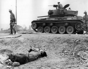Enfin, les intellectuels français critiques de la guerre d’Indochine à l’époque se comptent sur les doigts d’une main. En revanche, la liste de ceux qui se sont opposés au conflit algérien est longue : Jean-Paul Sartre, Albert Camus, Jacques Derrida, Franz Fanon et Pierre Bourdieu pour ne citer qu’eux. Même le cinéma français écarte les Vietnamiens. On voit les centurions français de la guerre d’Indochine dans les films de Pierre Schoendoerffer comme La 317ᵉ Section ou Le Crabe-tambour. On suit les soldats français dans les camps communistes après Diên Biên Phu. Mais on cherche en vain un film critique portant sur la toile de fond coloniale de la guerre d’Indochine qui serait comparable à la Bataille d’Alger de Gillo Pontecorvo.